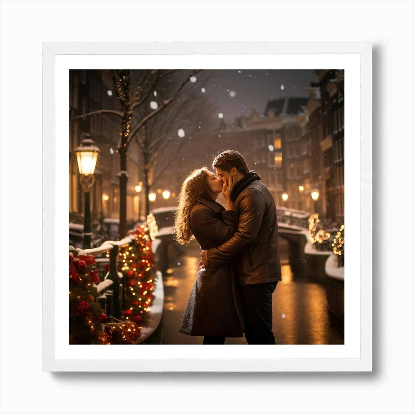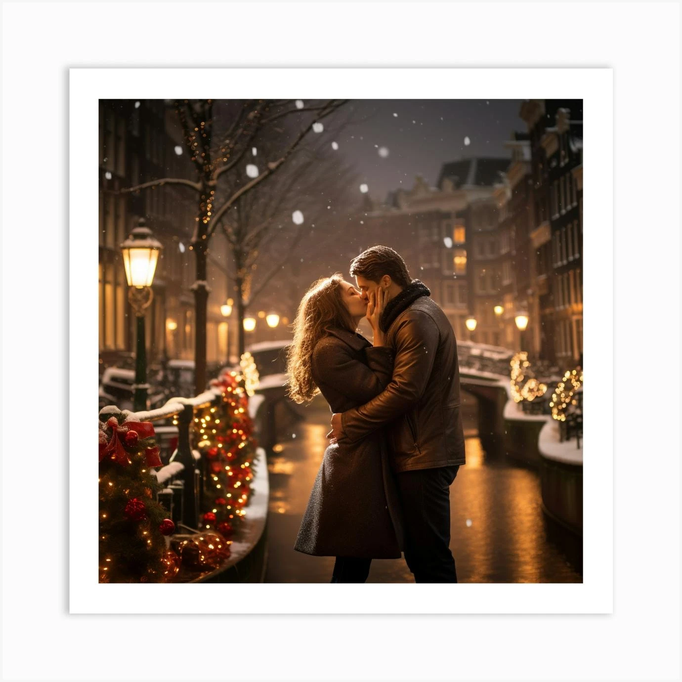 A Romantic Christmas Scene In Amsterdam 5 Art Print