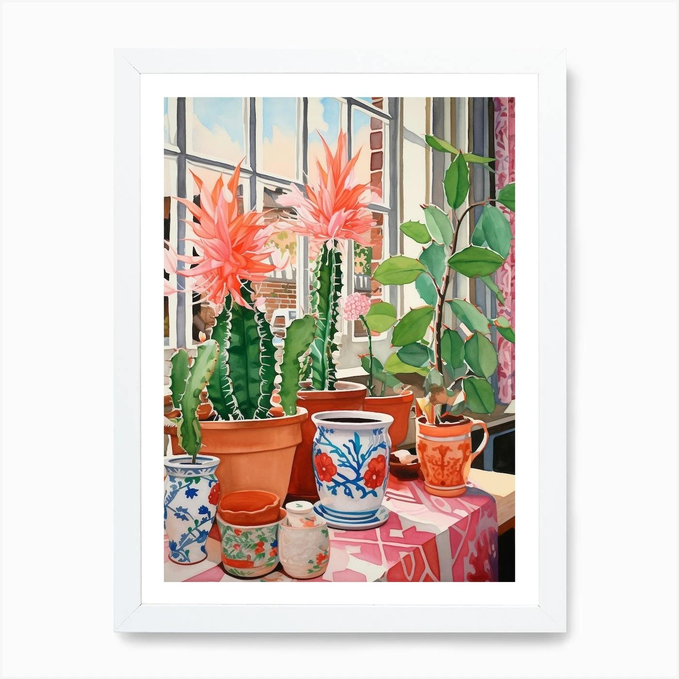 Cactus Painting Maximalist Still Life Christmas Cactus 1 Art Print