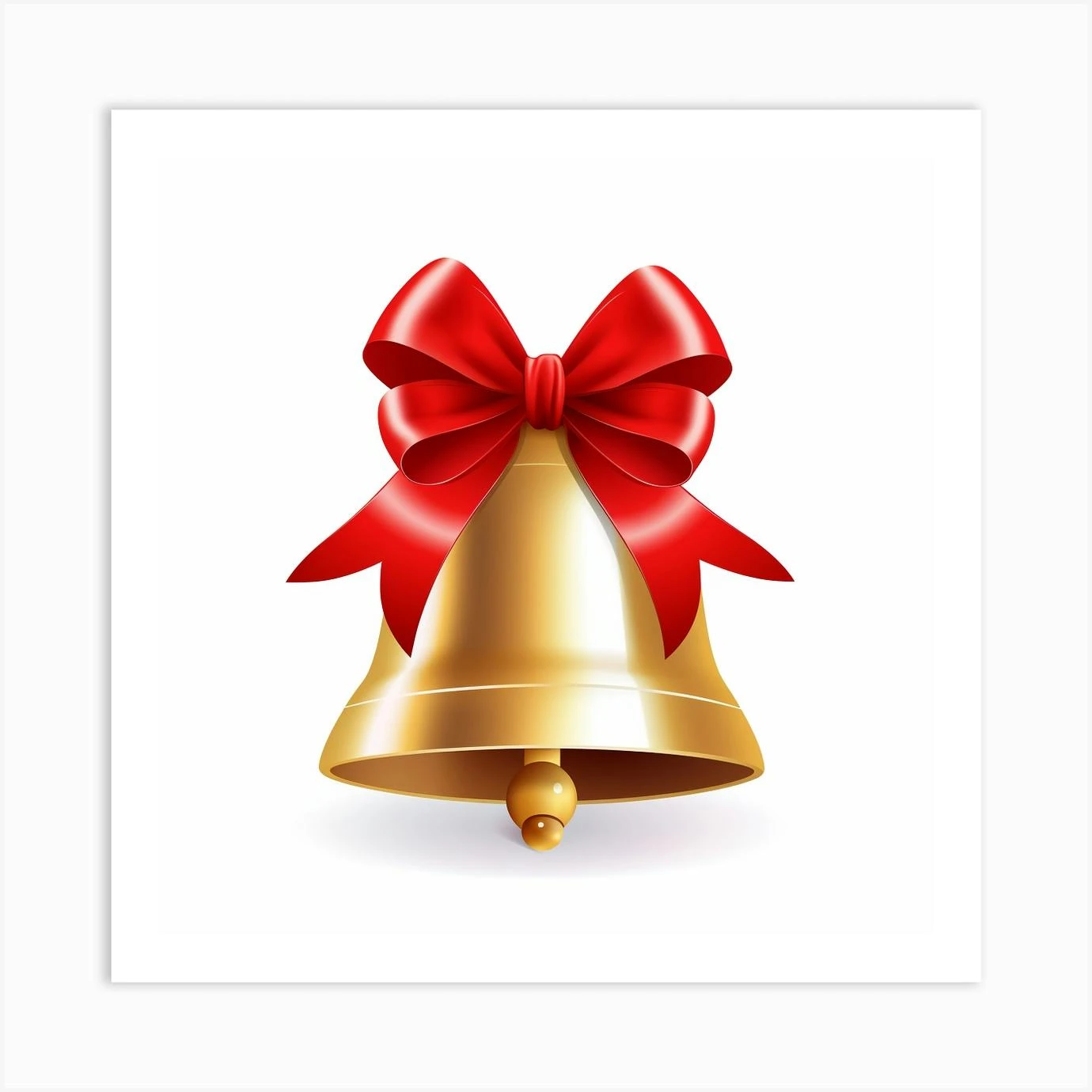 Christmas Bell With Red Ribbon Art Print