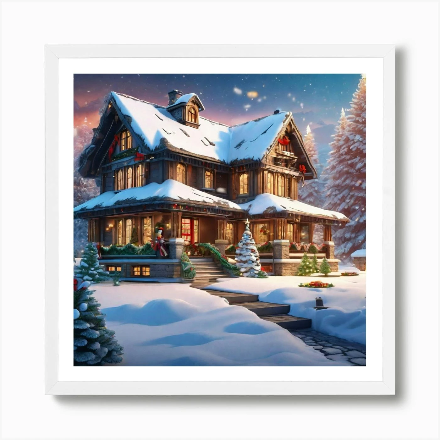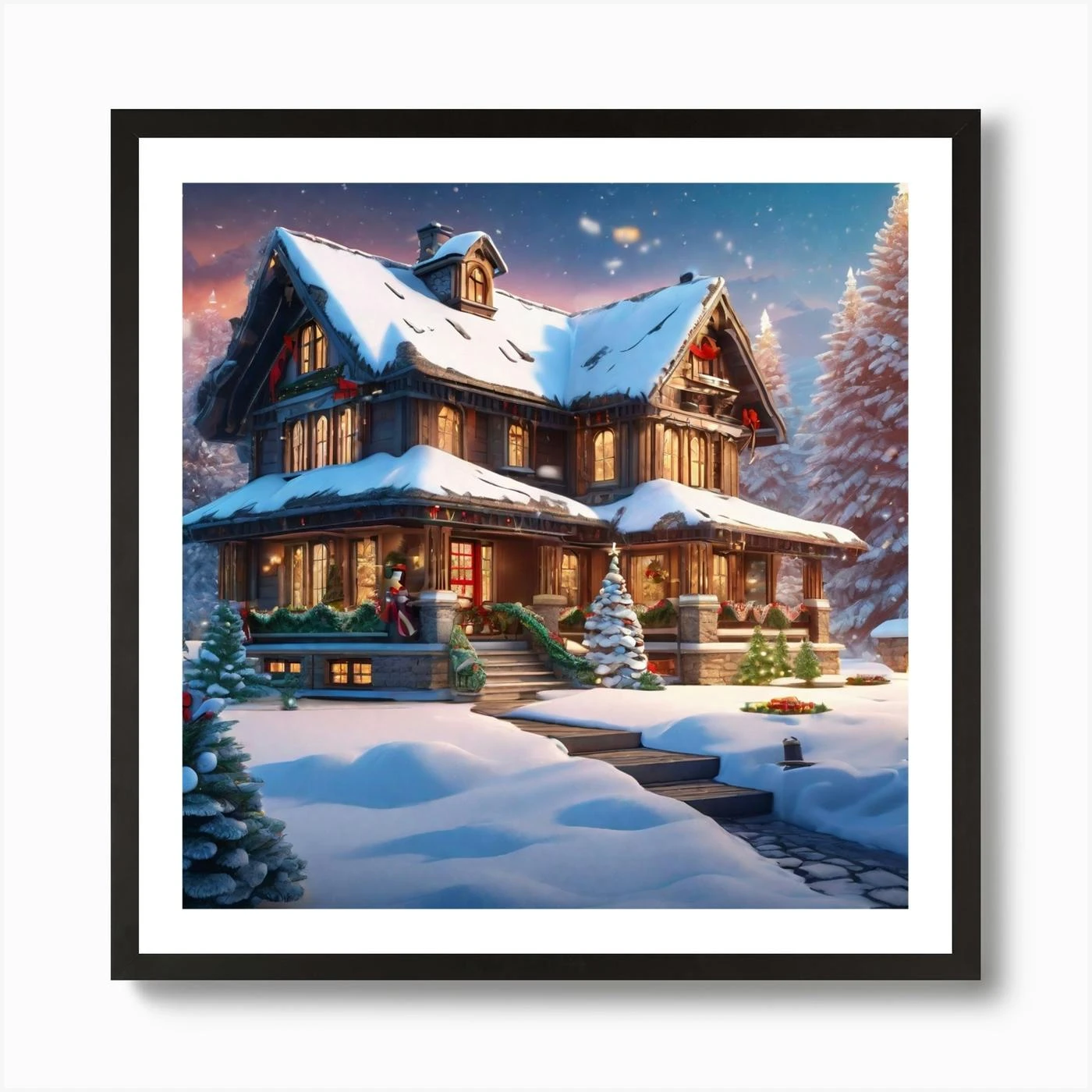 Christmas Decorated Home Outside Ultra Hd Realistic Vivid Colors Highly Detailed Uhd Drawing P (1) Art Print