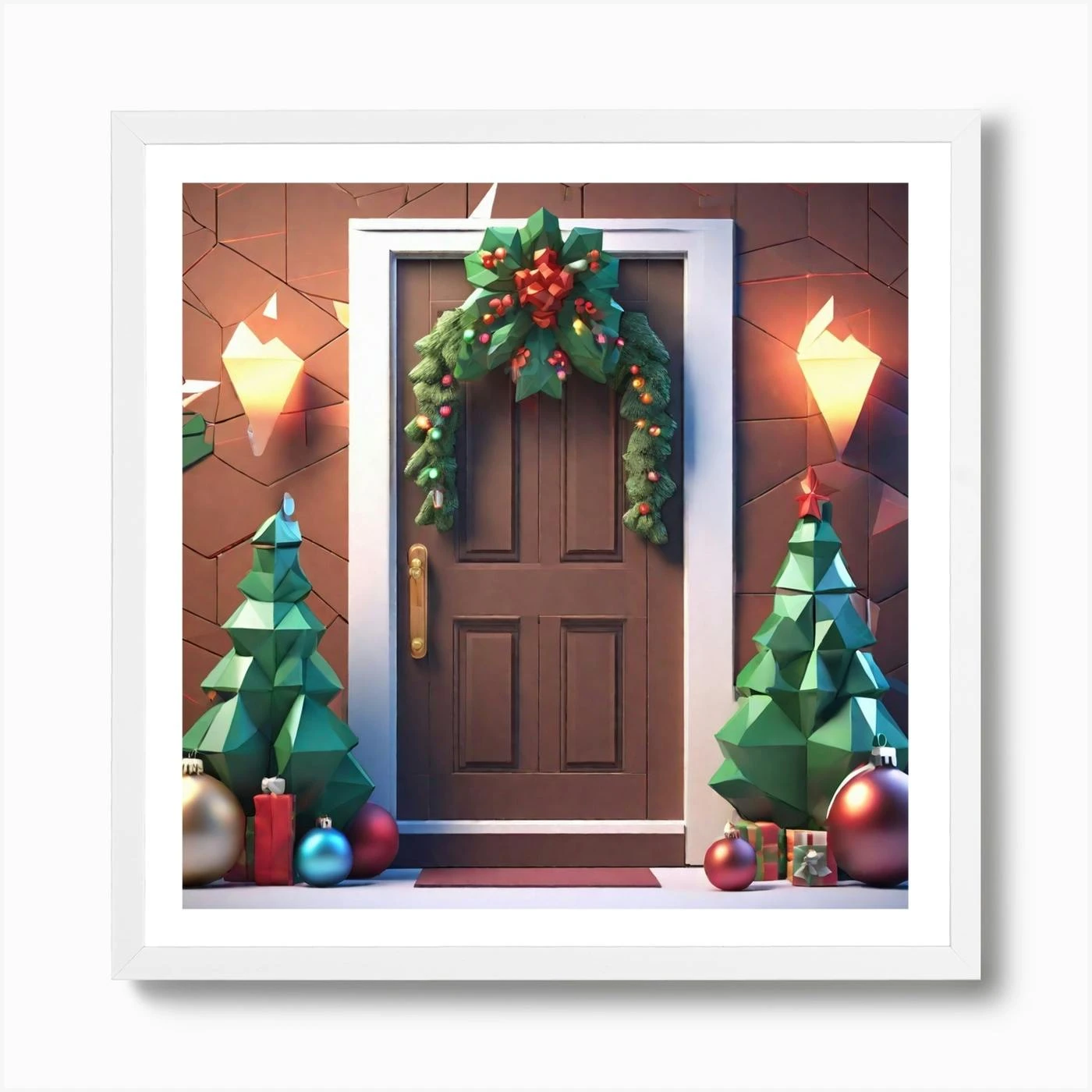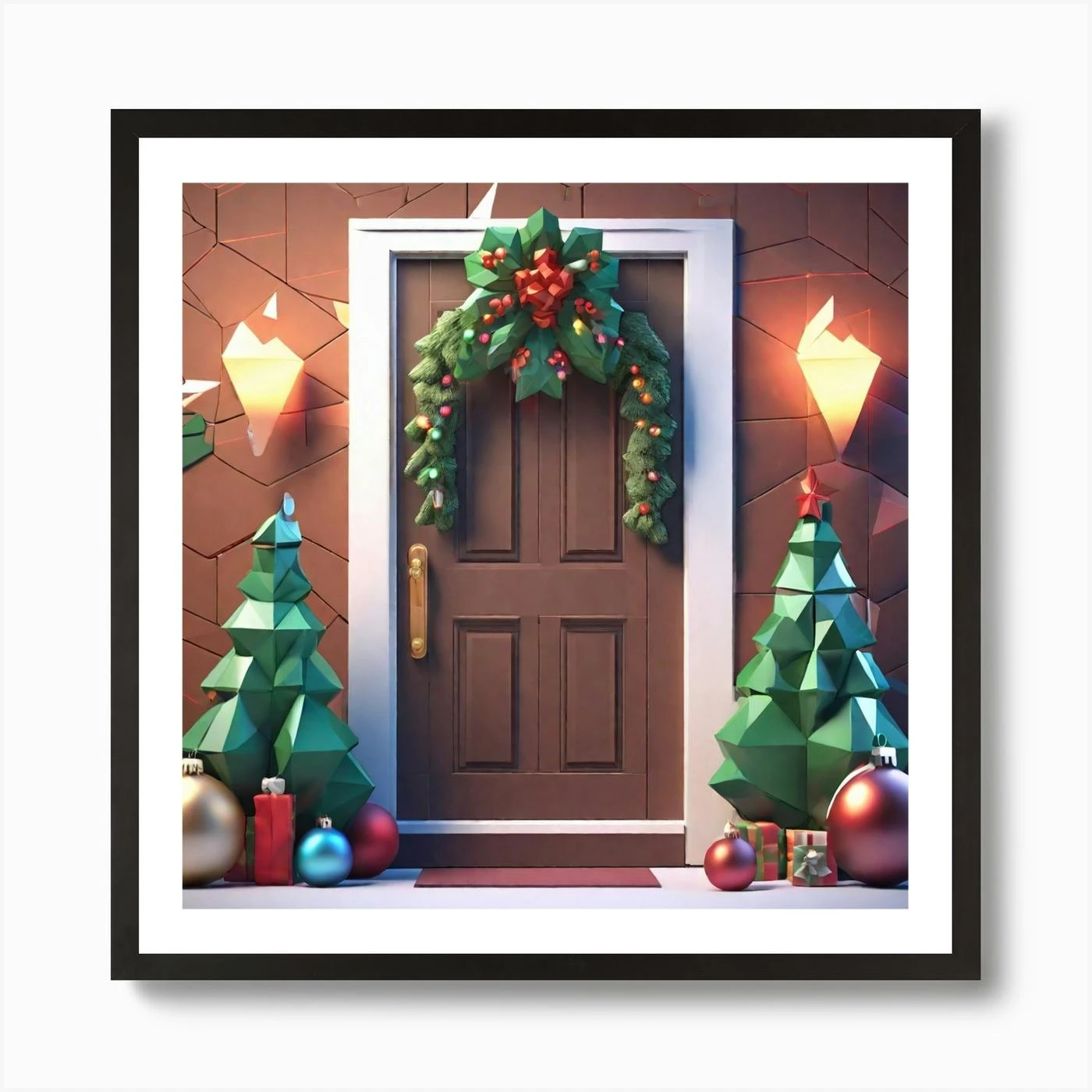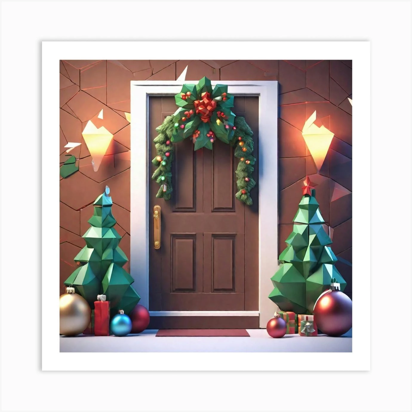 Christmas Decoration On Home Door Low Poly Isometric Art 3d Art High Detail Artstation Concept (1) Art Print