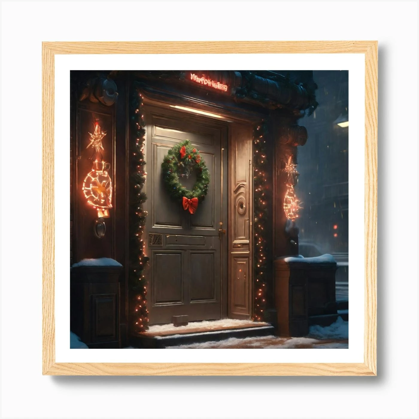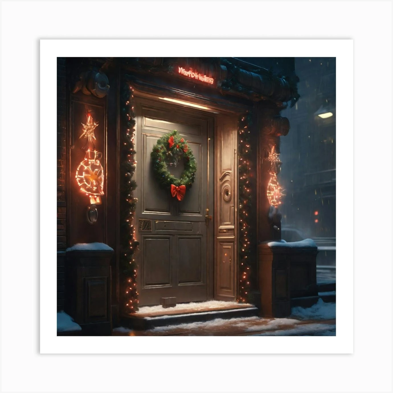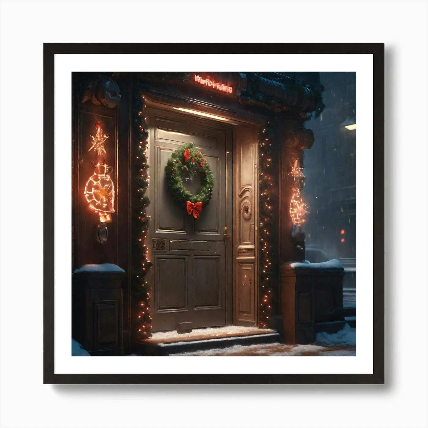Christmas Decoration On Home Door Sharp Focus Emitting Diodes Smoke Artillery Sparks Racks Sy (3) Art Print