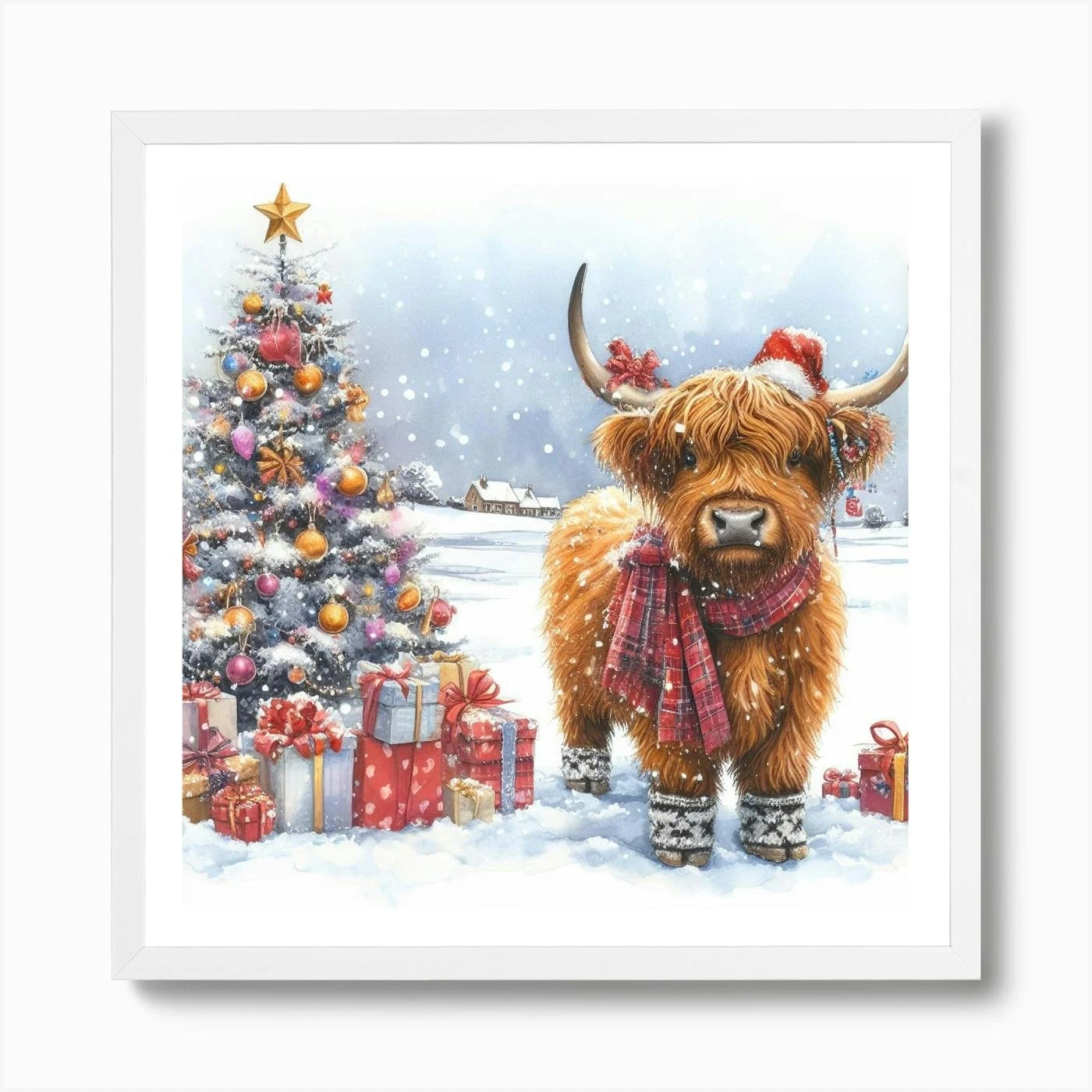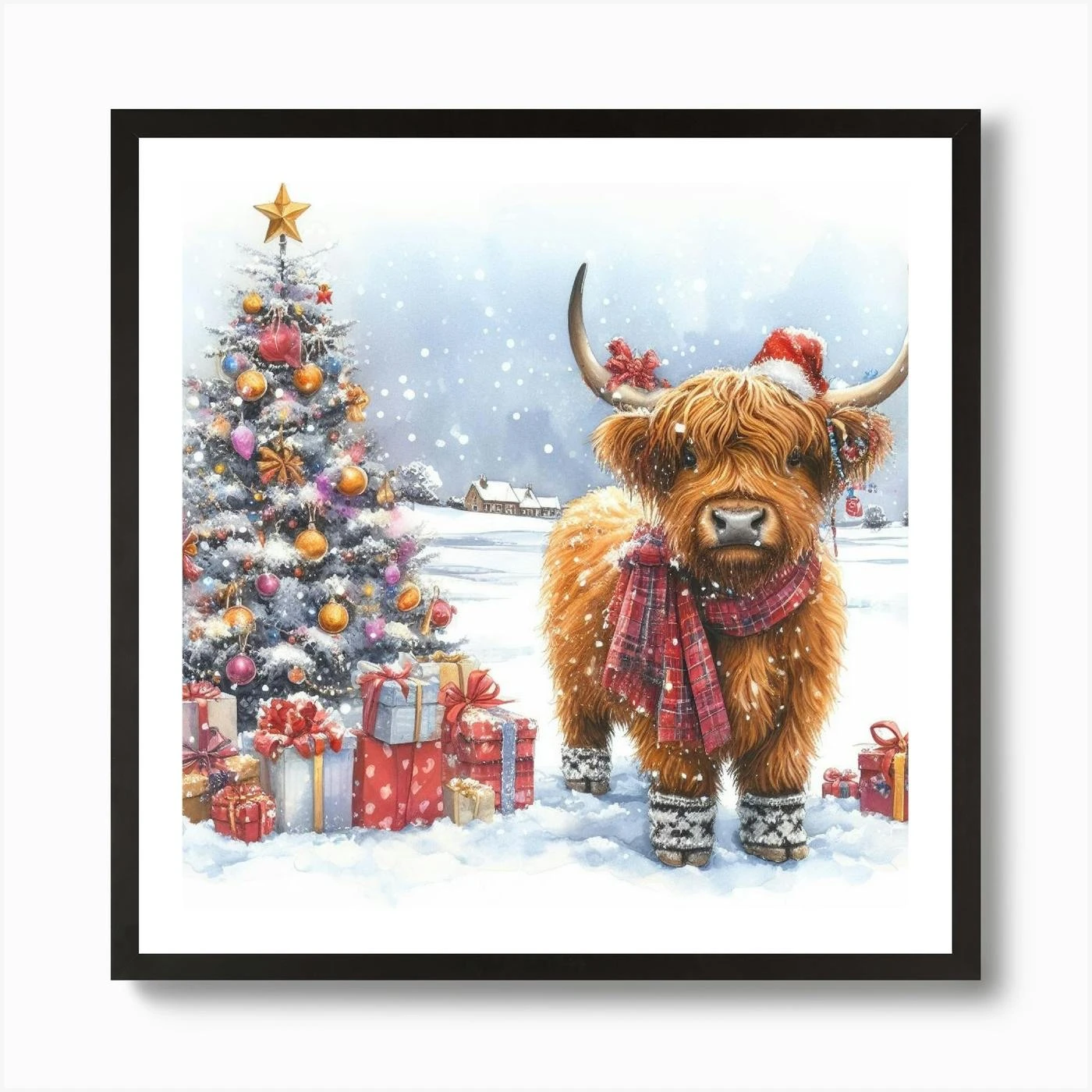 Christmas Highland Cow Art Print