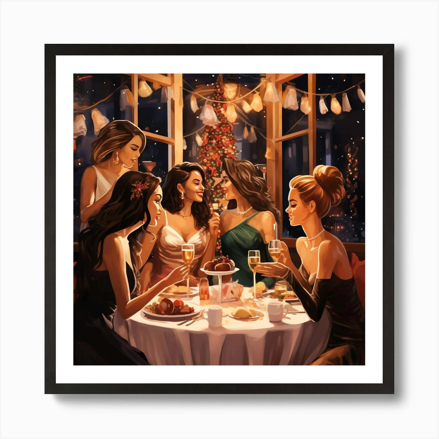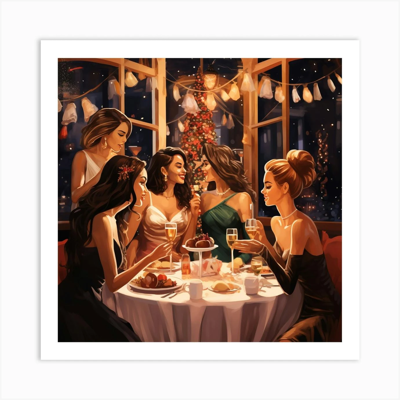 Christmas Party Scene With Gorgeous Women 2 Art Print