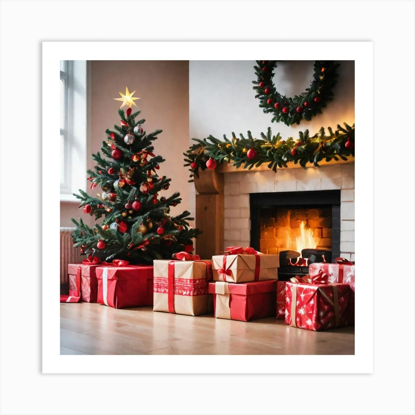 Christmas Presents In Front Of Fireplace 9 Art Print