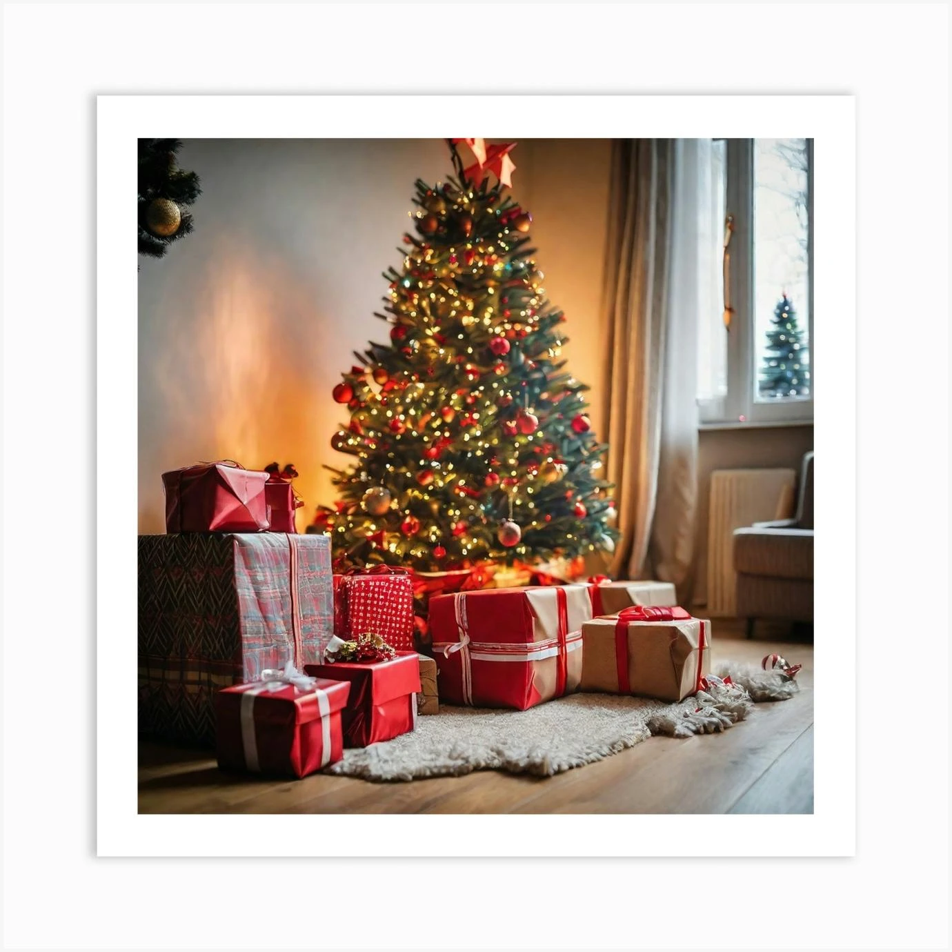 Christmas Presents Under Christmas Tree At Home Next To Fireplace (10) Art Print