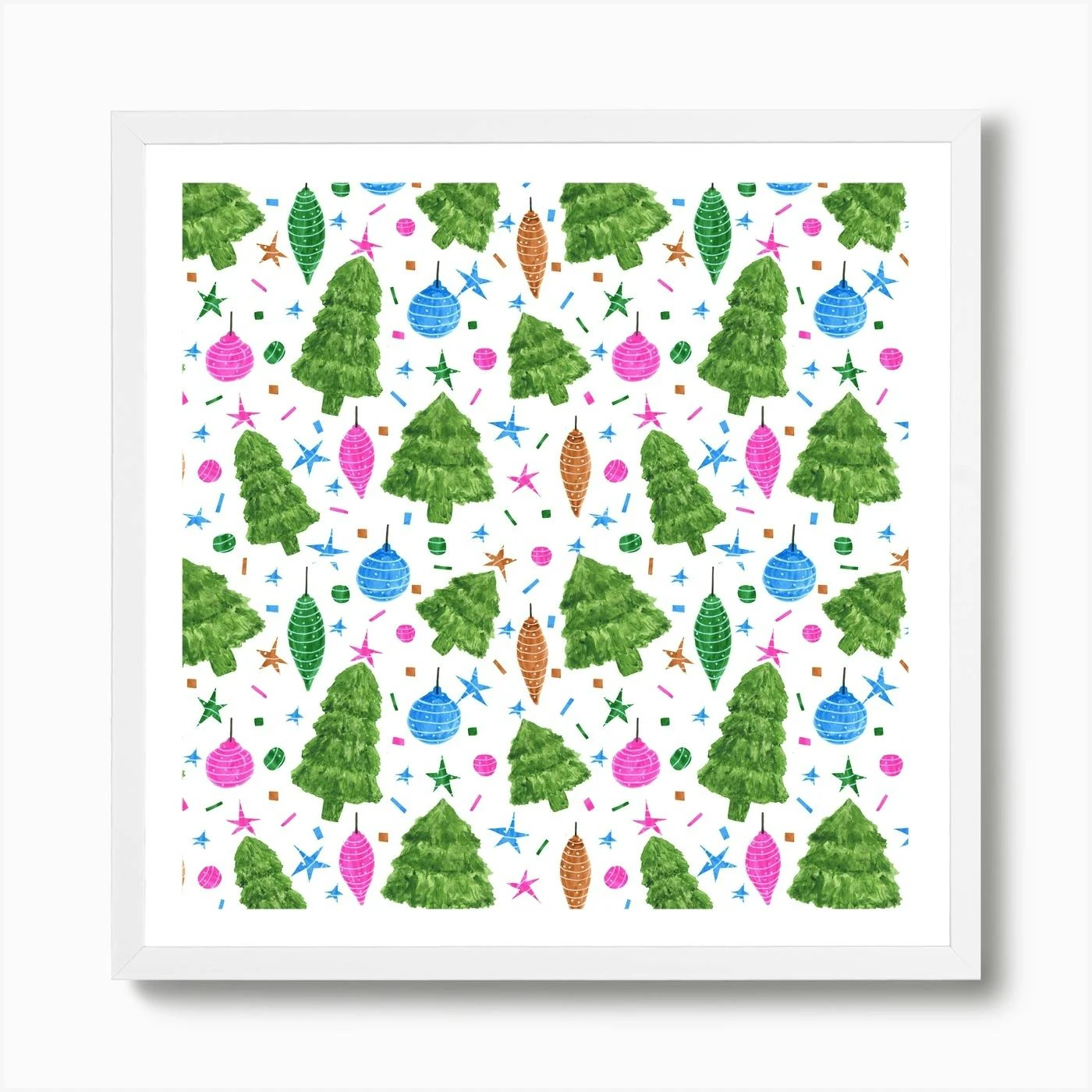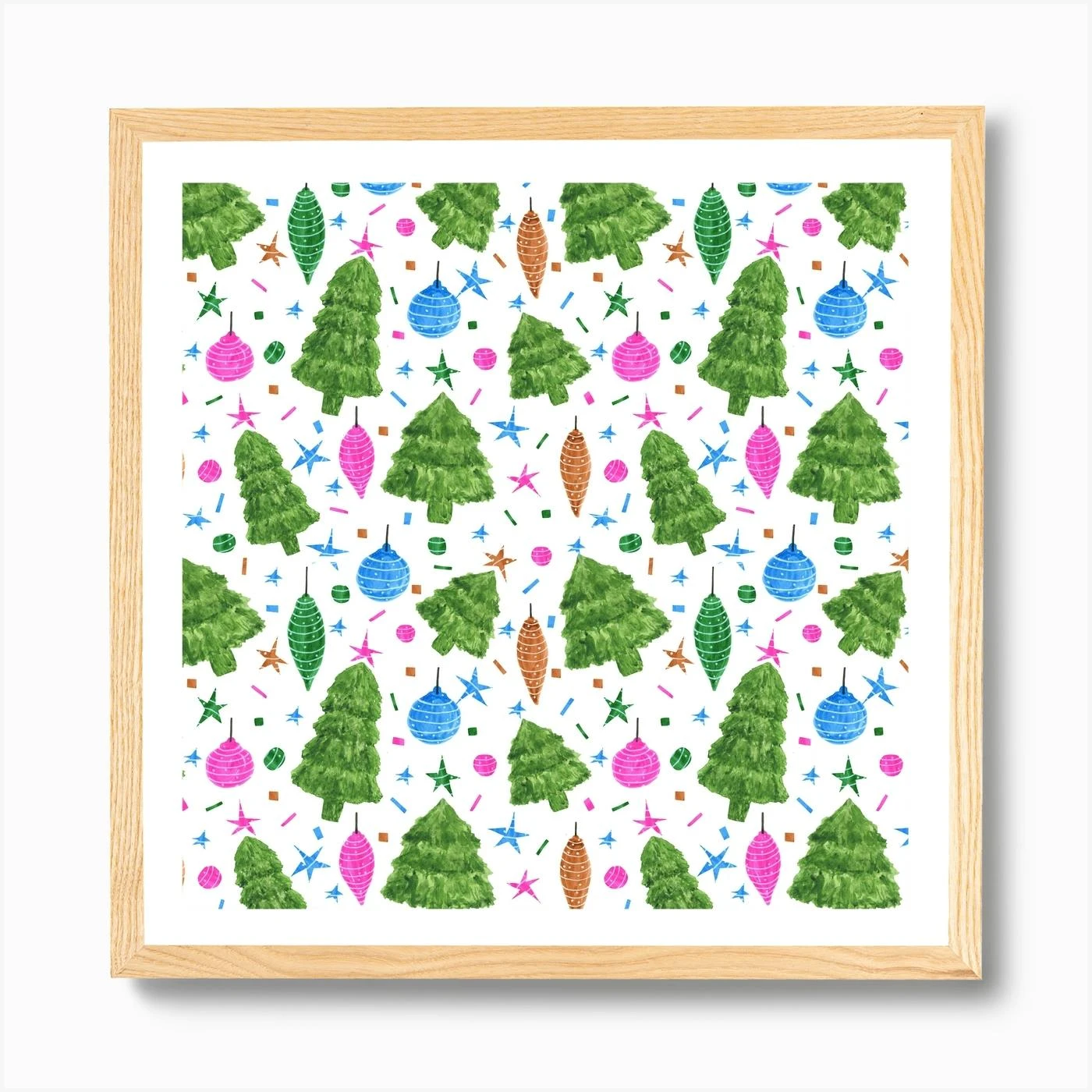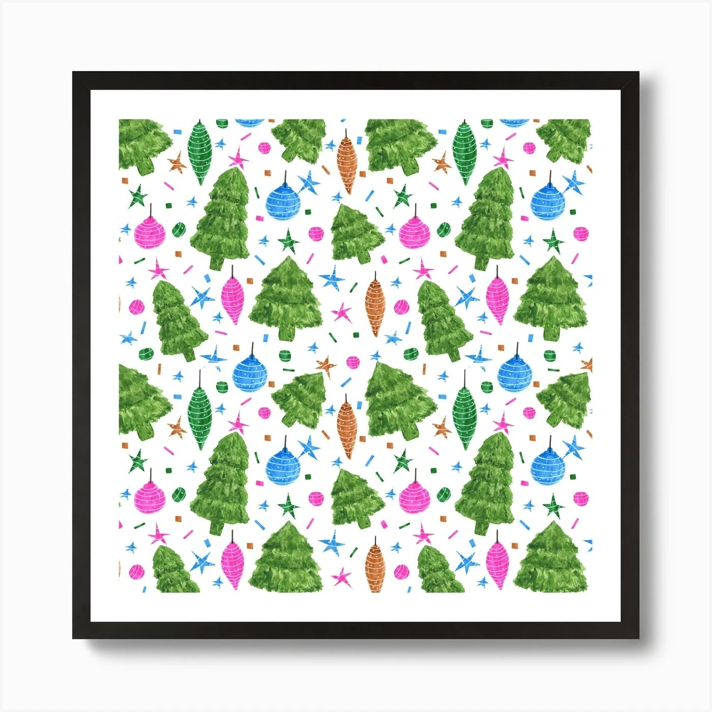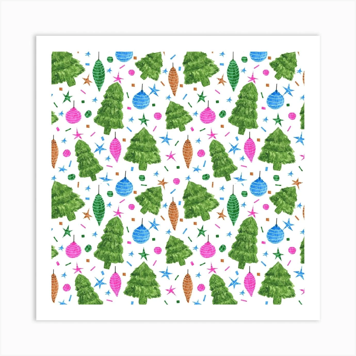 Christmas Trees And Bulbs Pink Blue Green Art Print