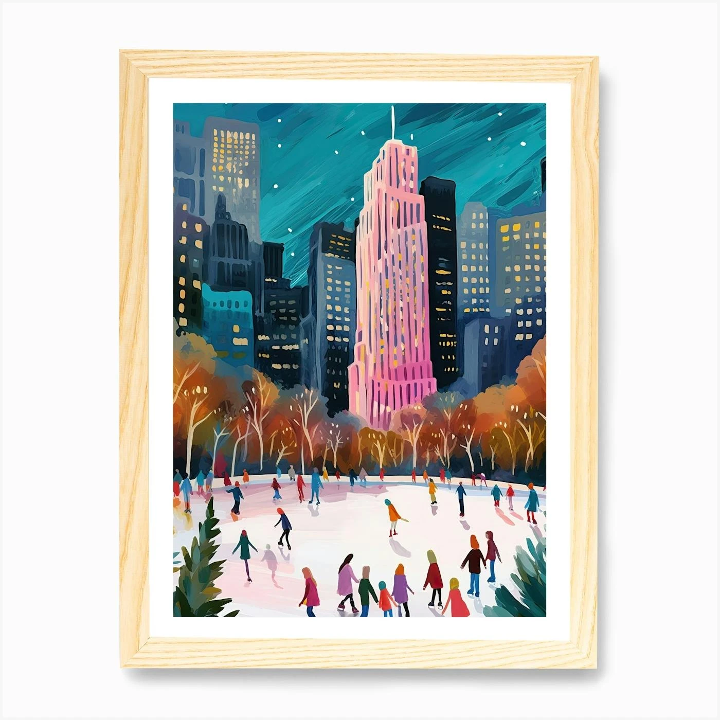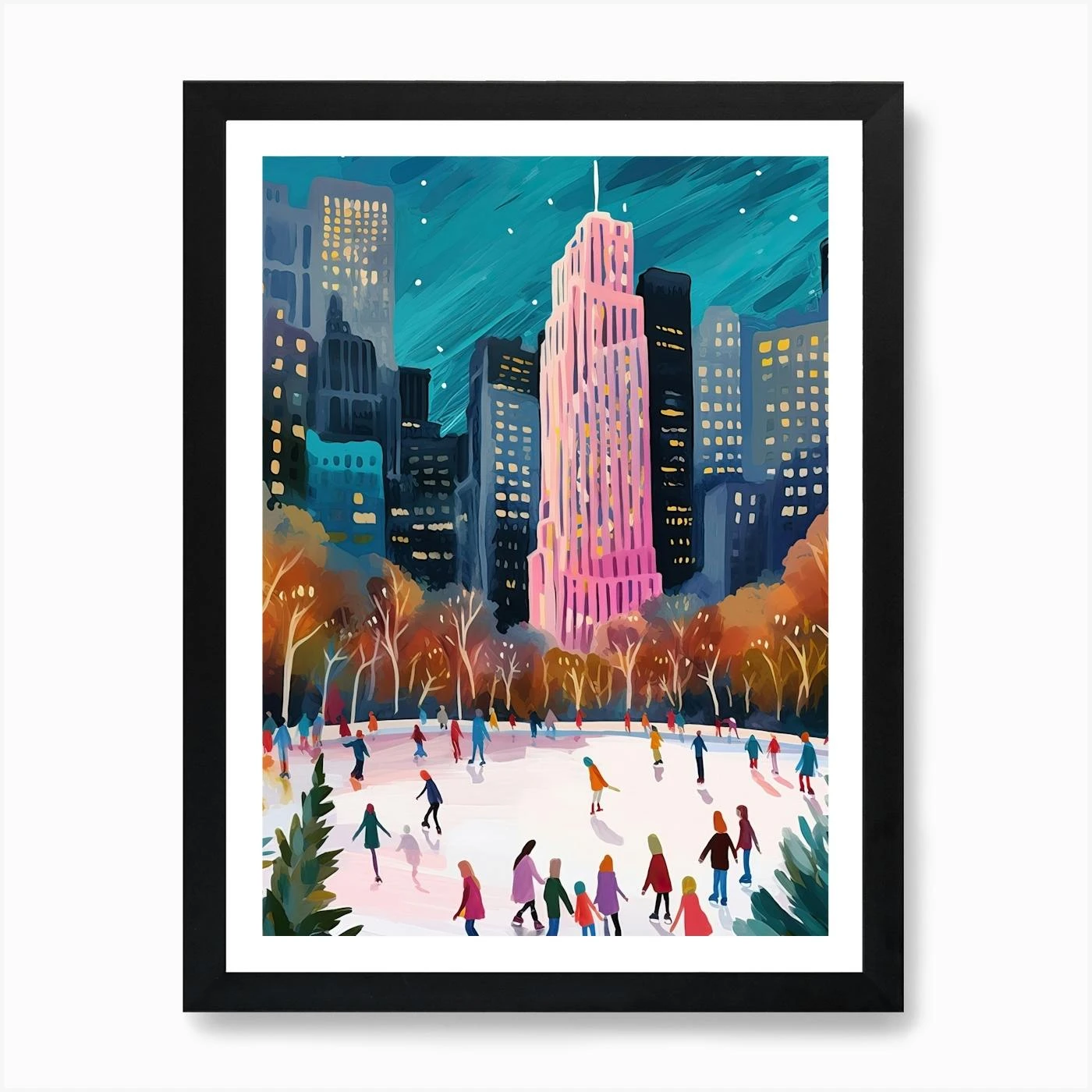 New York The Rink At Rockefeller Center Winter Christmas Travel Painting Art Print