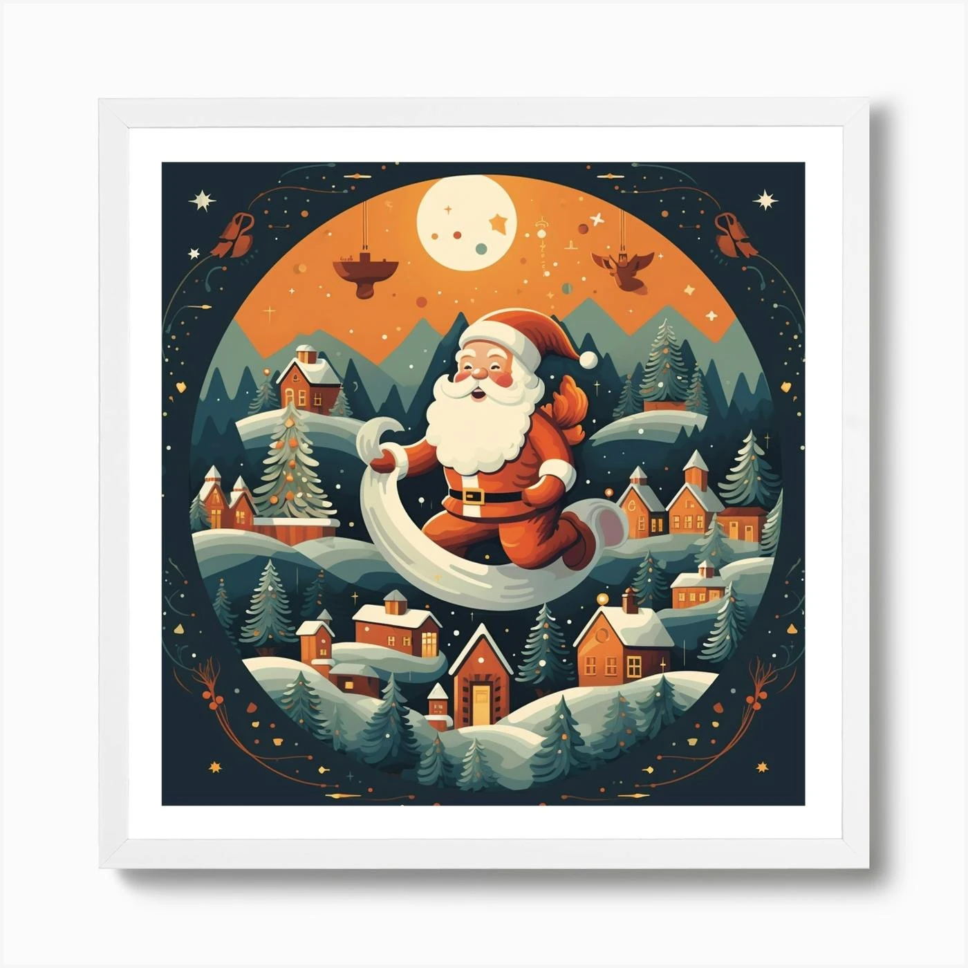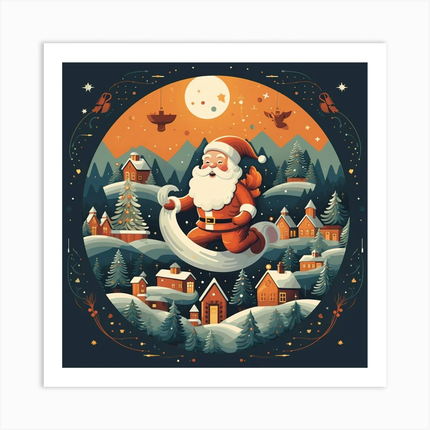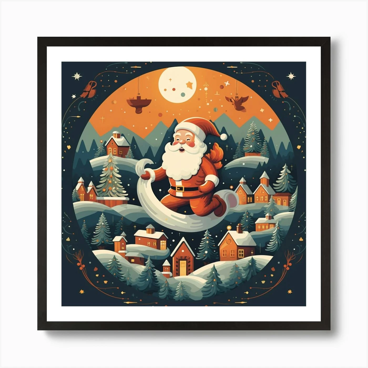 Santa Claus Flying Christmas Art Print