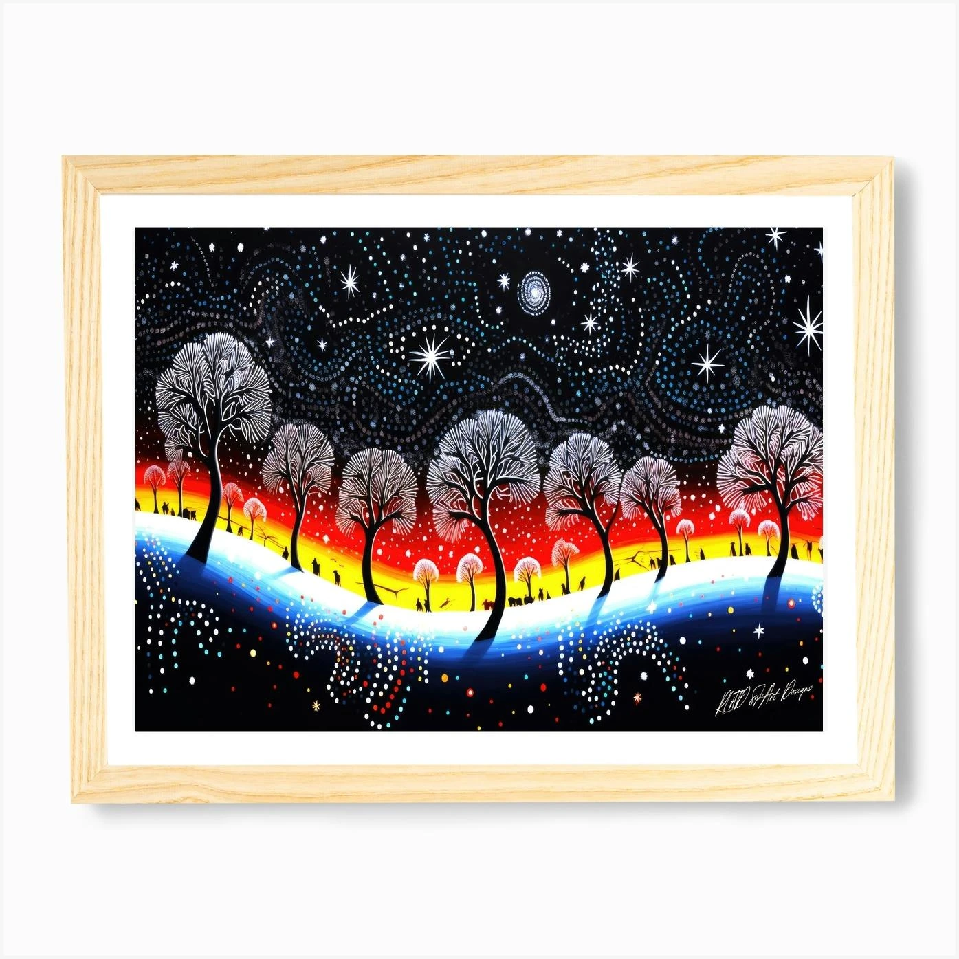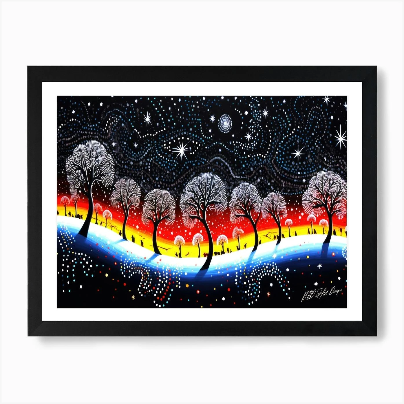Snow Christmas Scene – Trees In The Night Sky Art Print