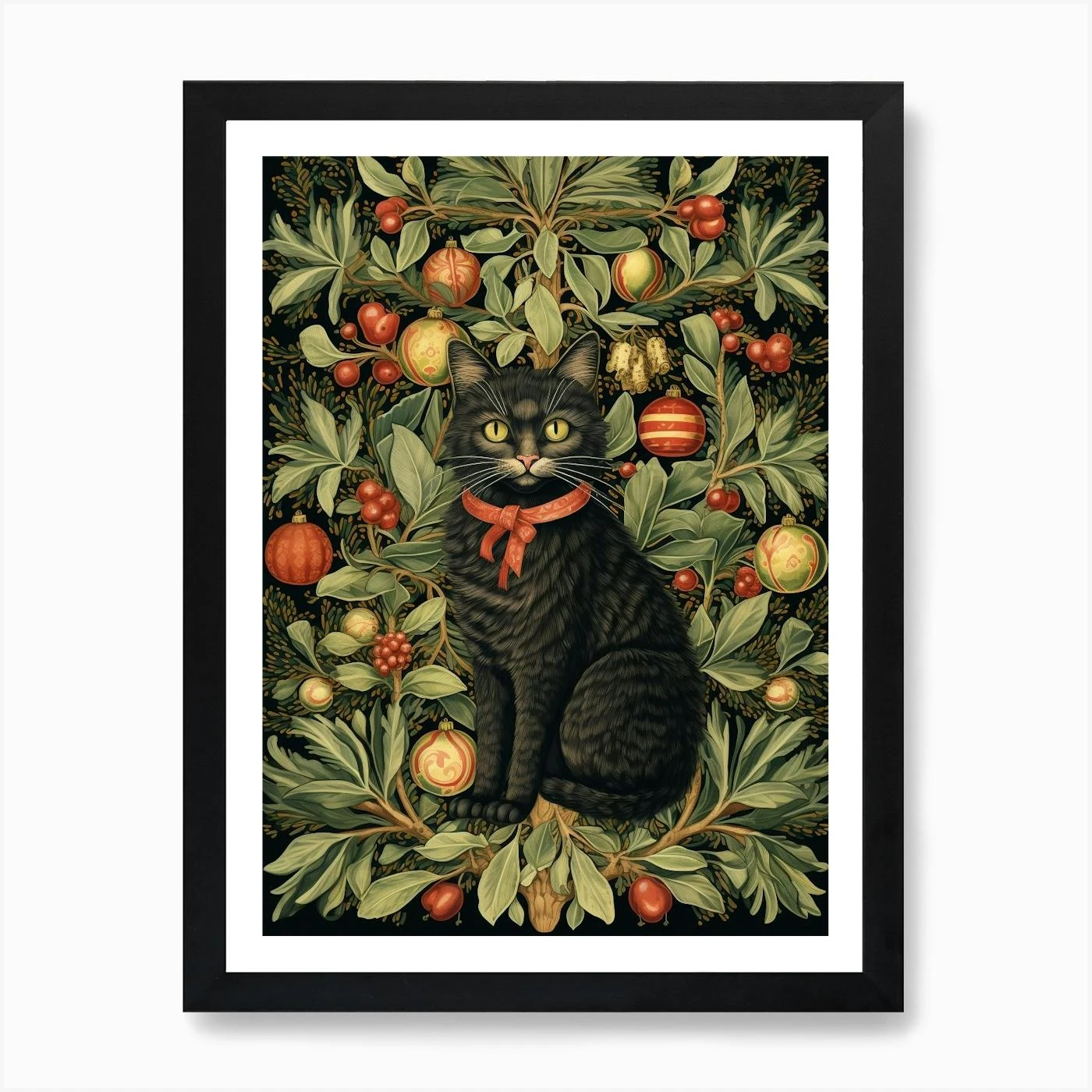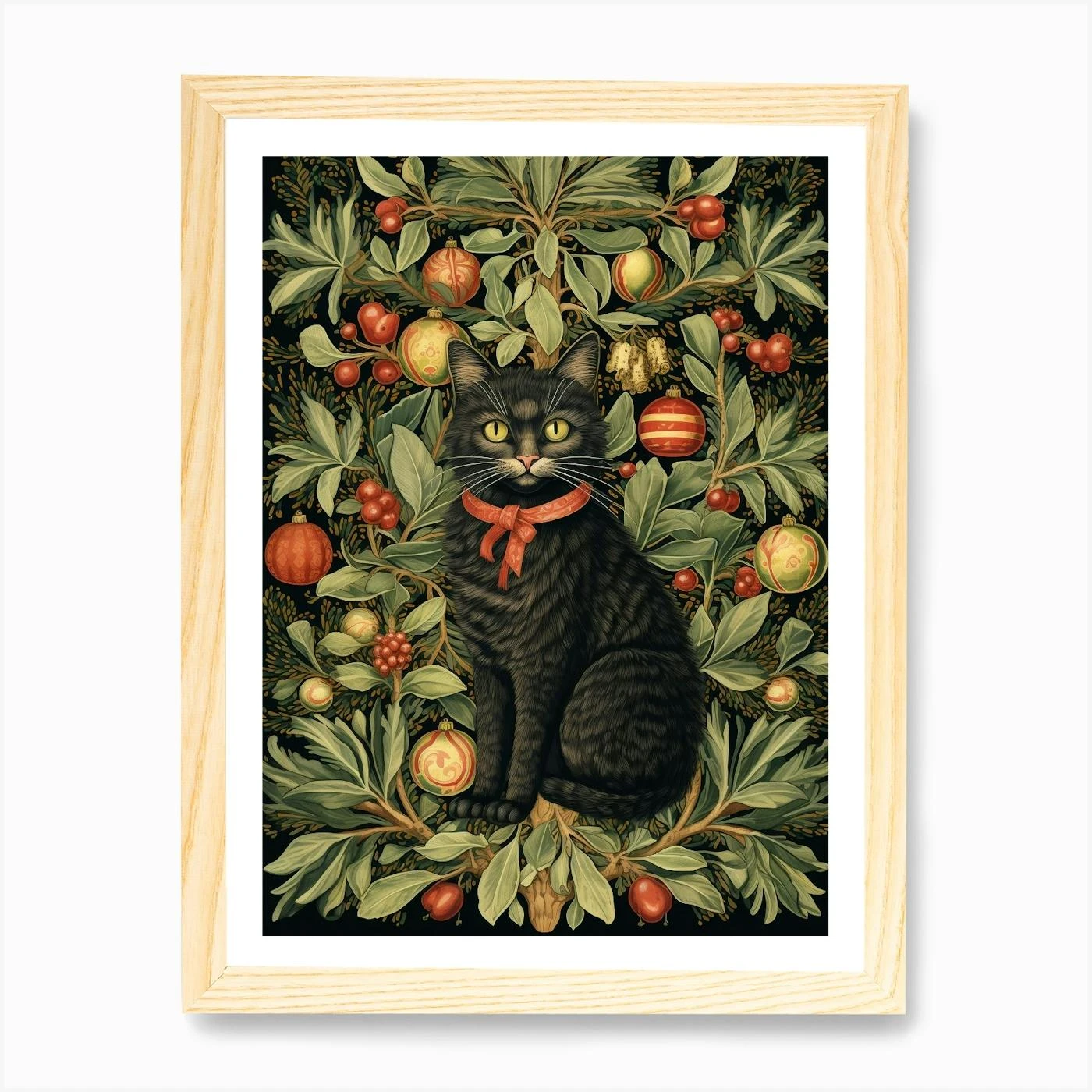 William Morris Style Christmas Cat 1 Art Print